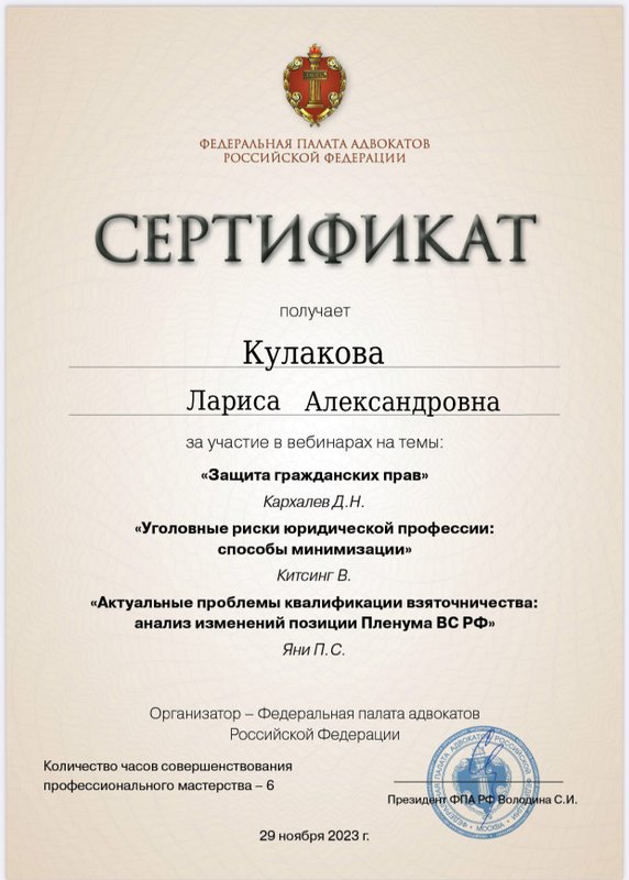 Подробнее о компании Адвокатский кабинет Кулаковой Ларисы Александровны